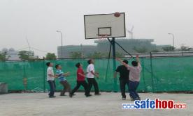 图6 分公司经理与员工进行篮球比赛 图7 分公司经理与员工进行足球比赛