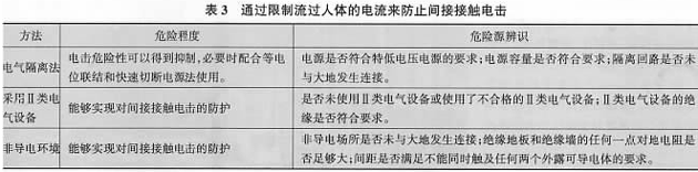 采用Ⅱ类电气设备(双重绝缘或加强绝缘)的方法和采用非导电环境(在该环境中人所能够触及到的物体都具有较高的对地绝缘水平)的方法,都是在电气设备基本绝缘失效时,仍能防止人体通过危险电流。但前者从电气设备本身着手,后者从使用环境着手(见表3)。