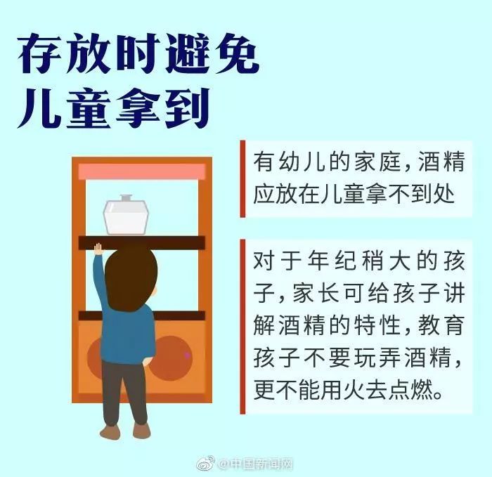 浓度75%以上的酒精使用时,必须远离明火,不要把酒精大量喷洒在婴幼儿和成人身体上,防止酒精过敏。