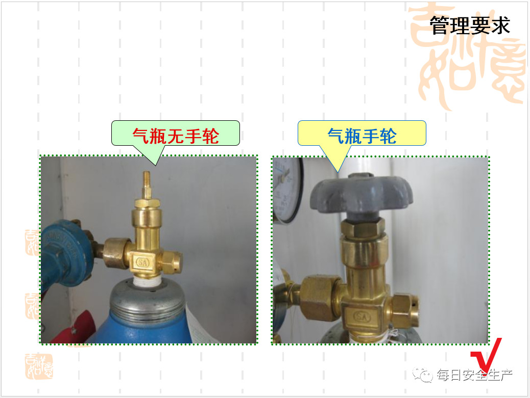 2.禁止用沾染油类的手和工具操作气瓶,以防引起爆炸。