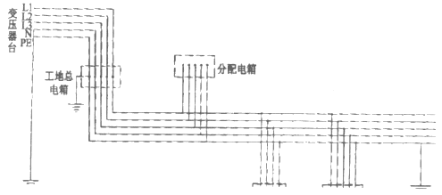 (2)严格按规定架设“三相五线”用电线路,接地系统应采用TN-S系统形式(见图1),电线连接宜采用螺丝压紧连接,严禁导线绞接,接地线(PE)必须在配电线路的中间处和末端处做重复接地。