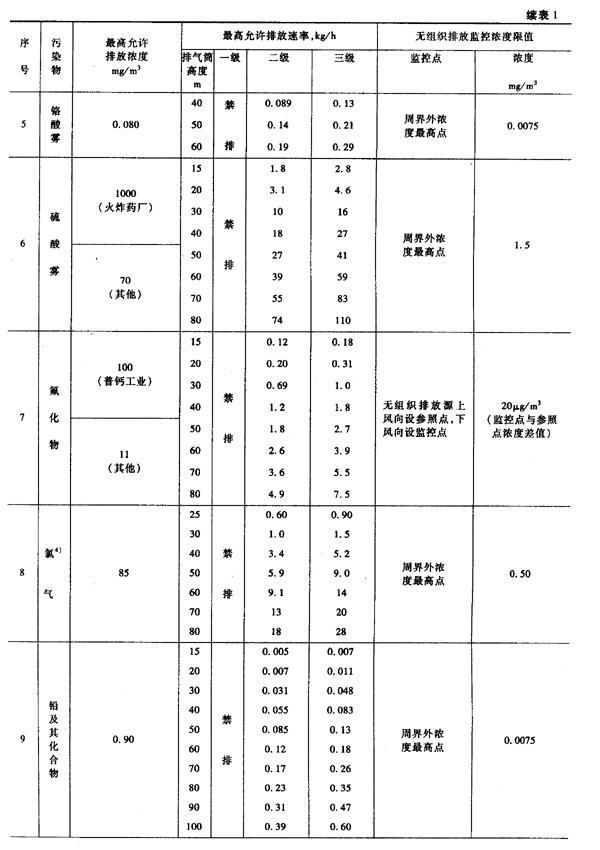 6.1 1997年1月1日前设立的污染源(以下简称为现有污染源)执行表1所列标准值。