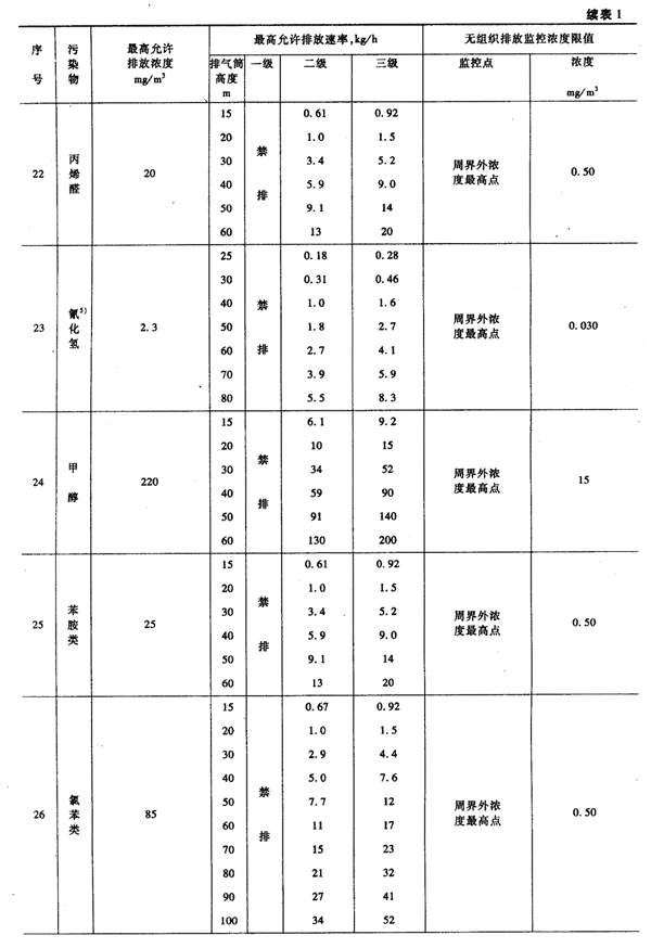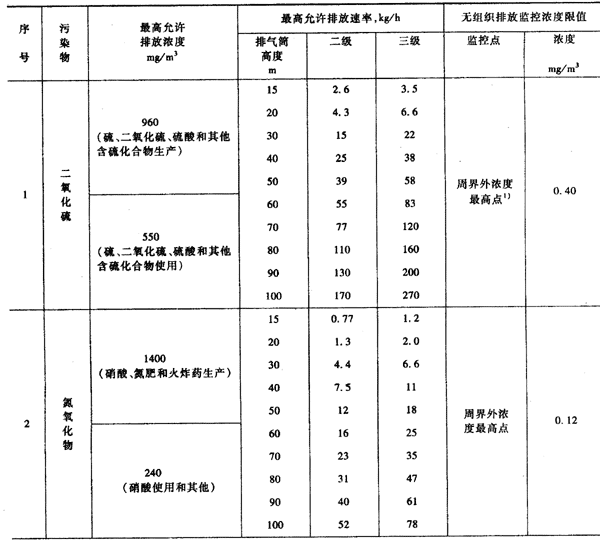 本标准规定的最高允许排放速率,现有污染源分为一、二、三级,新污染源分为二、三级。按污染源所在的环境空气质量功能区类别,执行相应级别的排放速率标准,即: