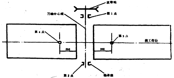 2.3.1 机床空运转时,刀轴两端轴承座垂直方向上的振动速度值和沿工作台中线离唇口一定距离垂直方向上的点的振动速度值,应不超过表4规定: