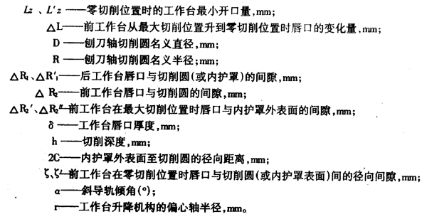 注:①最大切削深度h>5mm的刨床,如裁口刨床,最大开口量的计算,参考附录A。
