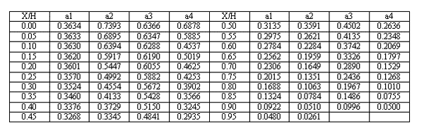 a1,a2,a3,a4——根据X/H求得的相应系数;