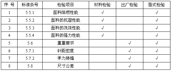 5.6.1 面料的阻燃性能试验按6.1规定的方法进行,其损毁长度不大于15cm,续燃时间不大于5s,阴燃时间不大于25s,不应有融滴现象。