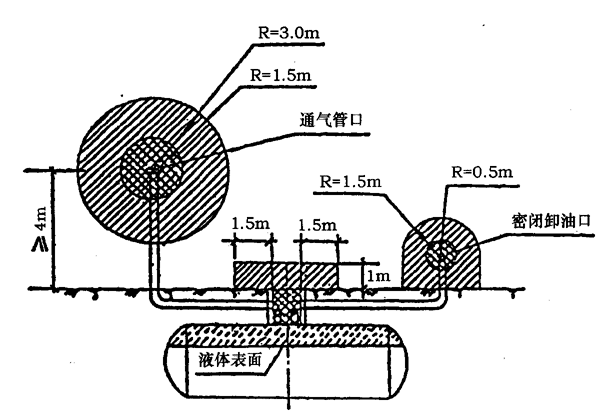 六、 铁路油罐车、汽车油罐车的装卸油的鹤管——鹤管的管口中心线。