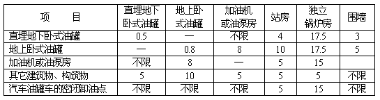 表2.2.1 小型石油库内建筑物、构筑物之间的防火间距