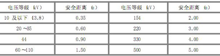 表5-2 设备不停电时的安全距离