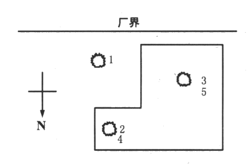 4、5.二楼室内中央测点 2、3.一楼室内中间测点 1.一楼室外1米测点